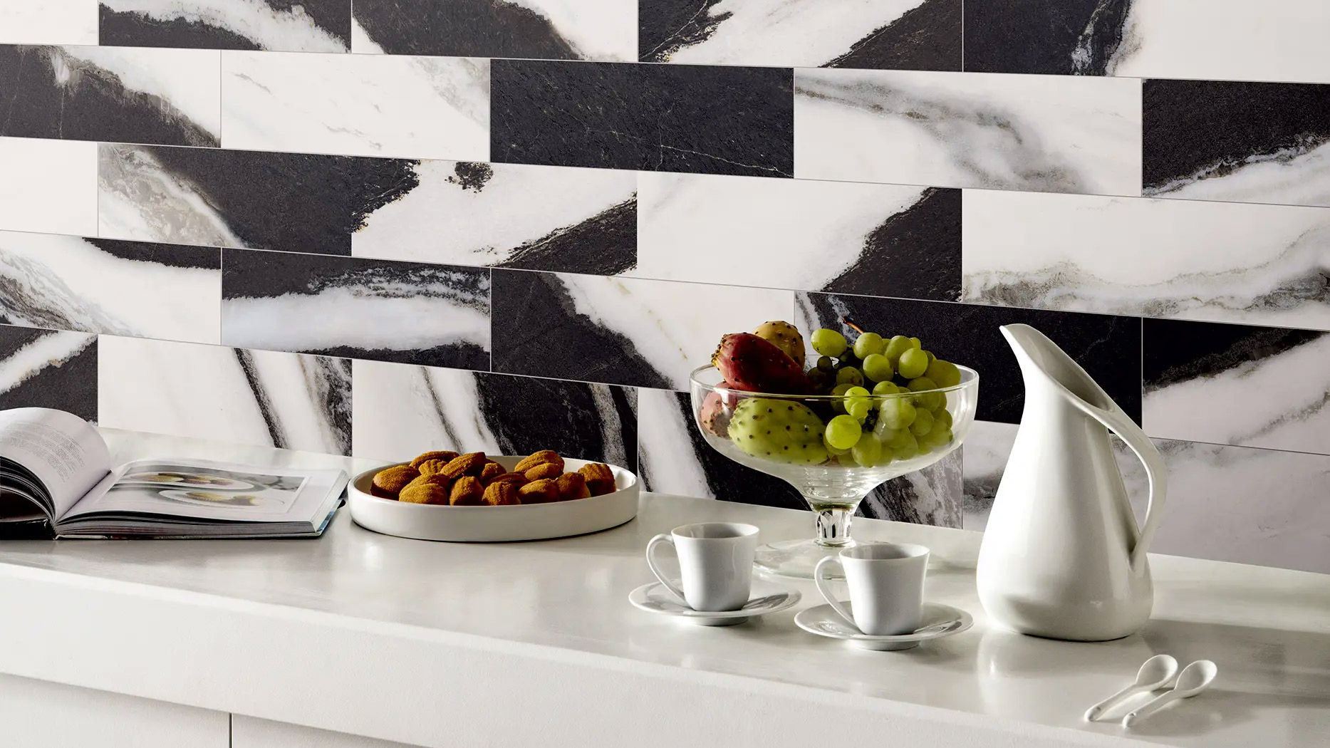 Symphony está inspirada en 3 tipos de mármol precioso. Las vetas y los movimientos superficiales hacen que este producto sea realista y natural, apto para cualquier tipo de ambiente, ya sea clásico o contemporáneo